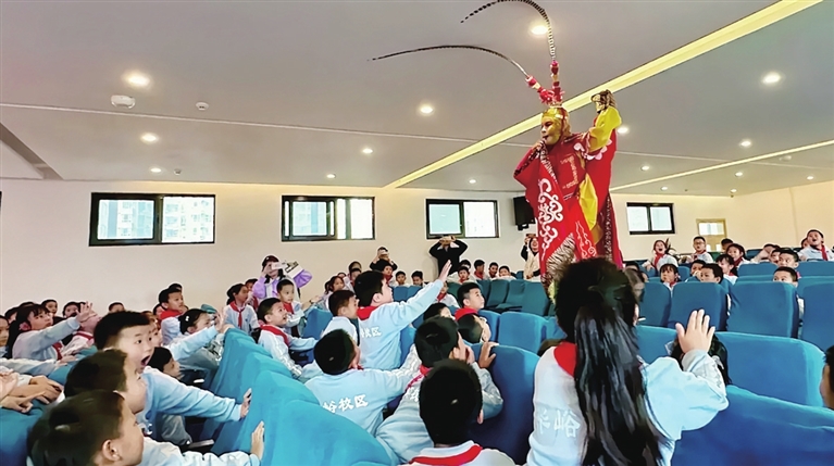 此次活动为师生们带来了一场难忘的沉浸式戏曲体验。现场,精彩节目轮番上演,尽显传统戏曲魅力。吕布翎子功的灵动飒爽、包拯经典唱段的铿锵有力、水袖表演的柔美飘逸,瞬间抓住全场目光;晋胡曲牌联奏旋律悠扬,尽显山西地方戏曲特色;美猴王表演更是将气氛推向高潮,灵动的身段、传神的动作吸引全场目光,台下学生的欢呼声与掌声此起彼伏;《程熊打柴》经典片段则以生动的演绎,让学生感受传统故事的韵味。