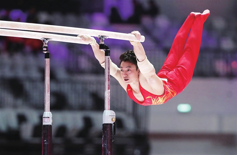 重回故地,邹敬园上演了全场最高难度6.0分的双杠动作,以超高质量拿到本届世锦赛开赛以来的单项最高分15.466分,其中包括0.1分的落地站稳奖励。
