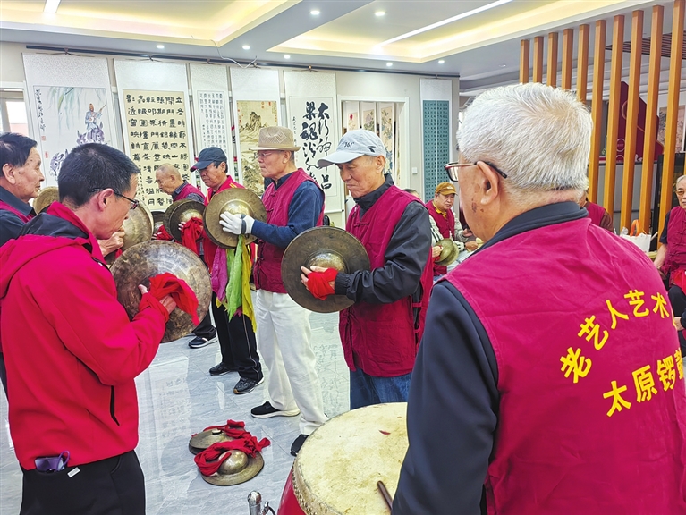 深秋的太原,寒意渐浓。10月16日,小店区营盘街道省政府统建宿舍小区党群服务站内却热火朝天——太原锣鼓艺术团的老艺人们正挥槌击鼓,钹铙相和,加紧排练。