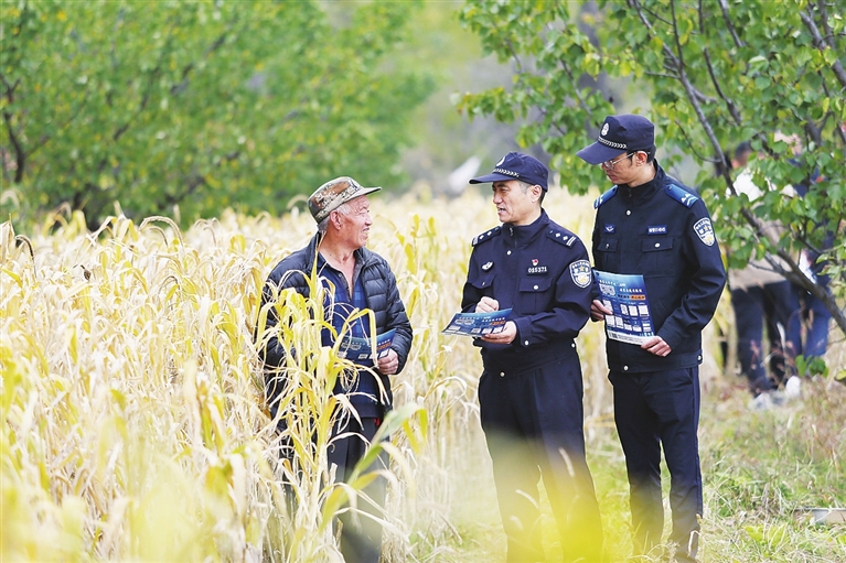 “王大爷,您别着急,我们来帮忙收割!”占道村部分村民因子女外出务工,家庭劳动力不足,面对沉甸甸的玉米、金黄的谷子,秋收却力不从心。社区民警在日常走访中了解到这个情况,利用工作之余,来到困难群众的农田里,帮助他们抢收秋粮。走进地头,民警迅速分好工,有的掰玉米、割谷子,有的负责搬运、归拢农作物,个个干劲十足。