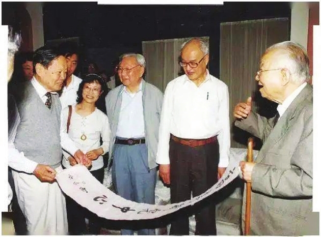 杨振宁与书法泰斗启功先生也曾有过交往。2002年,作为清华大学高等研究中心创始人的杨振宁,亲自邀请启功先生为研究中心题写牌匾。启功先生欣然应允,两位在各自领域有着巨大成就的老人,因笔墨而结缘。2004年,杨振宁前往探望病中的启功,两人的谈话焦点便是书法。杨振宁当时还特意提到:“我的岳父杜聿明,您认识吗?他也很喜欢书法,字写得也很好!”启功先生说:“我当然认识,杜老有一件好东西——《万岁通天帖》。我也见过,摹王羲之的手卷,是真的王羲之,太好了!”杨振宁说:“我没有见过。”启先生说:“这个帖现在在辽宁博物馆收藏着。”