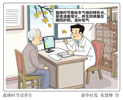 起居也需格外注意。中国中医科学院西苑医院血液病科主治医师李蕊白说,霜降节气昼夜温差较大,应及时添衣,特别是做好脚部和胃部保暖;宜早睡早起、保证充足睡眠,睡前可以热水泡脚以缓解疲劳;可通过郊游、登山、赏菊等活动舒缓心情,但不宜过度劳累、大汗淋漓。