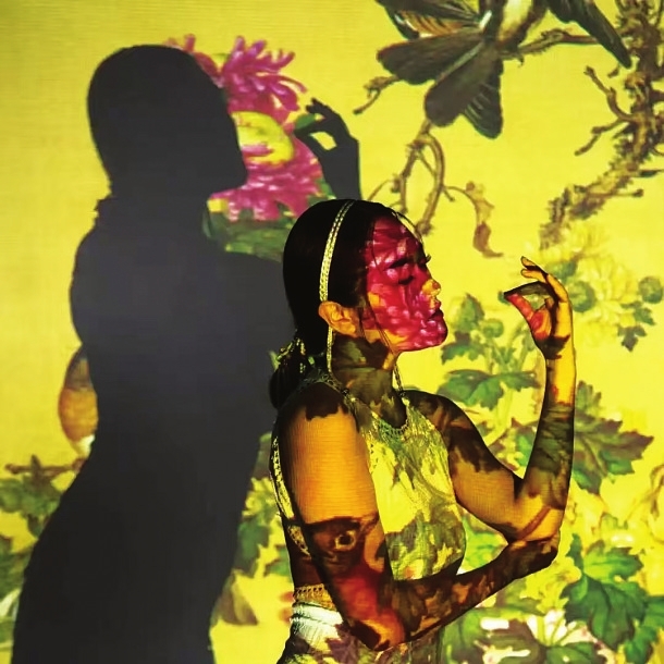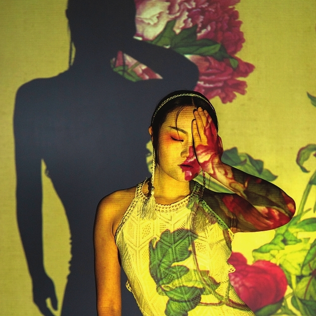 郎世宁的花草意趣与女性模特摆姿的契合,是于家睿对中国传统美学“气韵生动”的诠释。郎世宁的工笔花草,以西洋技法写中国意韵,其笔下的花草形神兼备,既有botanical(植物学)式的精确,又有中国绘画以形写神的灵动;而模特的摆姿基于投影内容的自然呼应,这种互动式摆姿让人体成为花草的延展载体,花草成为人体的艺术外衣。于家睿巧妙地让郎世宁的洋为中用与当代女性的自我表达形成互文:郎世宁的创作是清代中西艺术碰撞的产物,于家睿的摄影则是传统与时尚对话的样本,二者跨越时空,共同诠释着东方美学兼容并蓄的内核。