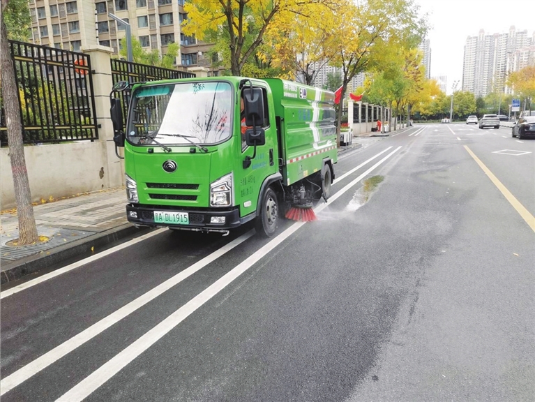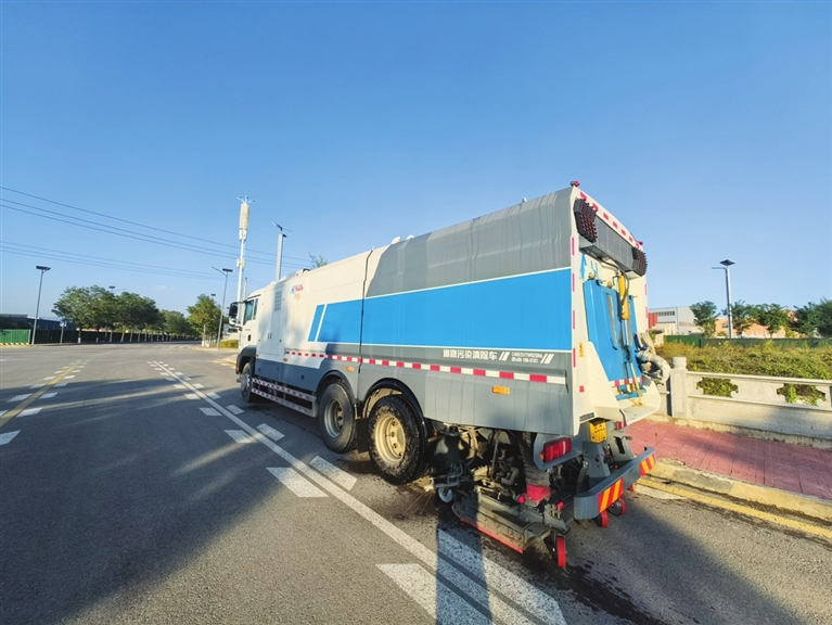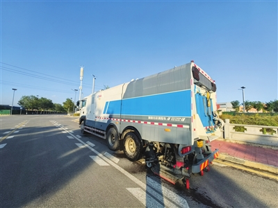 恢复路面本色。传统清扫车清扫后,路面可能看起来很洁净,但颜色依然是灰黑色的。中北高新区引进的深度清洁车通过超强真空吸力、超强高压冲洗旋转刷盘研磨,能清除嵌入路面毛孔和缝隙中的多年积垢、油污、粘附物,使沥青或水泥路面恢复其原本的颜色,实现“路见本色”。