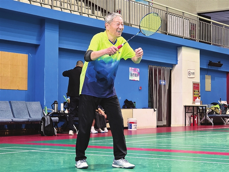 起初,为了锻炼身体,刘继忠开始接触羽毛球,逐渐迷上了这项运动。“时间过得真快,我打羽毛球已20多年了。只要能挥动球拍,会一直打下去。”老人每天清晨打两个小时的球,一整天精力充沛。他说:“身体好,有球打,能出去跟球友们交流,这就是我觉得幸福的事。”