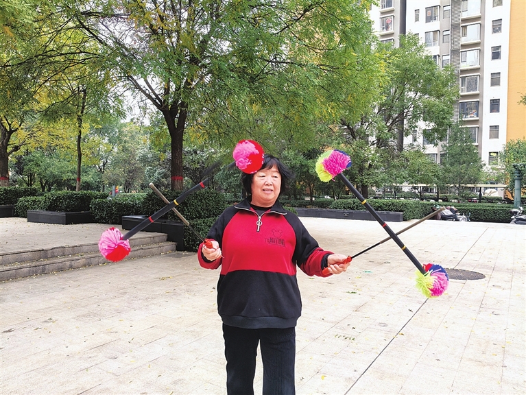 “退休后干点自己喜欢的事,是一种幸福。打花棍使我受益多多,也希望有更多的人喜欢上这项运动,一起享受快乐和健康。”她舞动着手中的花棍,笑容格外灿烂。