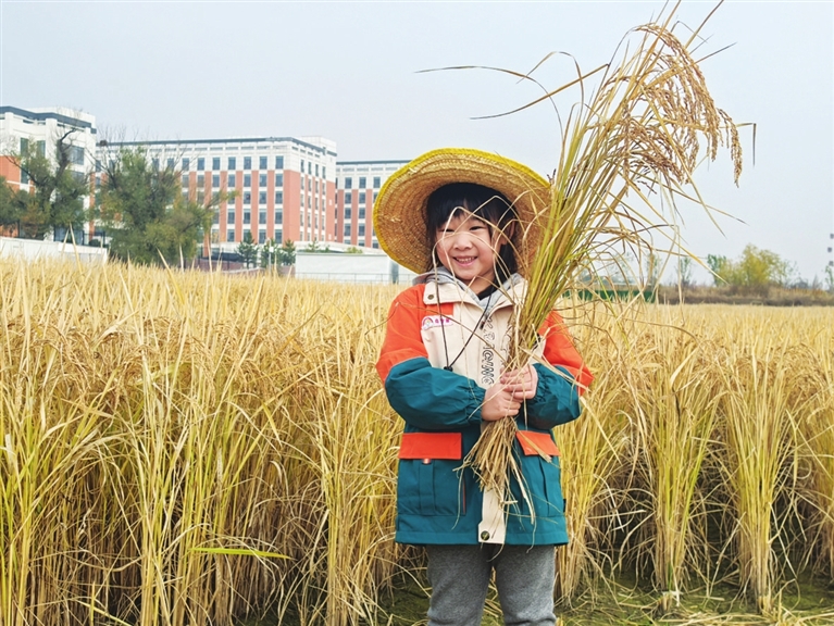 丰收的喜悦不仅来自产量提升,更源于发展模式的创新。园区持续推广“稻蟹混养”生态循环农业模式。“螃蟹对水质和农药非常敏感,它们的健康生长,本身就是大米绿色品质的‘活证明’。”稻田公园农业负责人张慧平介绍。园区还深入挖掘水稻附加值,推出米糕DIY、农耕文创产品展示等活动,让市民游客在观赏丰收盛景的同时,沉浸式体验农耕文化的独特魅力。