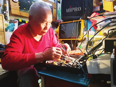 近日,院里景阿姨家的电饼铛坏了,儿女咨询厂家售后得知,维修需要一百多元。儿女说不如丢了买新的,老人抱着试试看的心态给何森君打了电话。“何师傅接到电话时还在吃早饭,一听情况马上放下碗筷就来了。”景阿姨回忆说,“他检查后发现是一个电容器坏了,跟我说不需要买配件,他家里就有同型号的,取来后就给换上了,还帮我给电饼铛做了全面清洁,跟新的一样,还分文不收,连配件的钱也不要。”