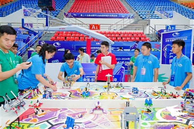 2407班的聂九亨是机器人社团社长,他分享道“这次国赛给我最大的启发是,我们过多地重视复杂的结构和赛台任务,却忽略了对主题的理解,后来我和老师提了建议,之后在比赛中面对评委的问题就更加从容了。”在比赛中,他不断反思、提升自我,同时用实际行动守护社团这个集体。