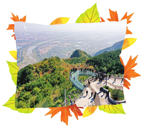 11月2日,崛围山层林尽染,色彩斑斓的秋季图景缓缓展开,游客登高赏景。 牛利敏 摄