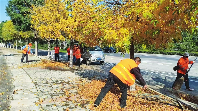 小街小巷因道路空间狭窄,商铺密集且行人往来频繁,人工清扫为主要作业方式。环卫工人用特制“防滑扫帚”作业,扫帚底部加装橡胶垫或布条,在清扫时稳固抓地保障作业安全,又能减少对路面摩擦磨损。若遇秋雨过后落叶黏附路面的情况,配合高压水枪采用“先冲后扫”的作业方式,清除残留落叶,确保街巷环境整洁干爽。下一步,城管环卫部门将动态优化人机协同作业方案,加密重点区域清扫频次,精准应对天气变化,细化落叶收运管控,以精细化服务守护城市秋日洁净。