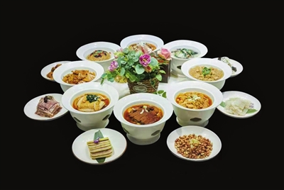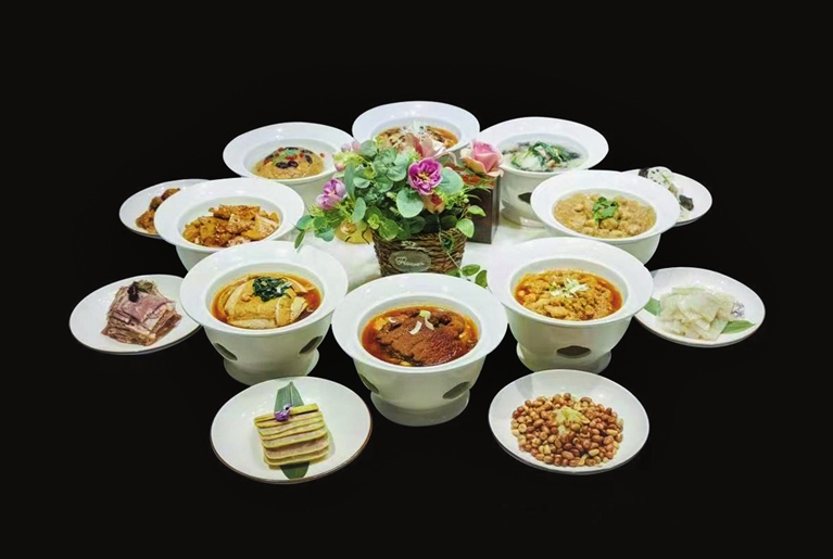 谈及传承中的创新,郑永强颇有心得,“以前八碗中有烧肉方和烧肉条两道相似的蒸肉菜,现在人们讲究营养搭配,我们就保留一个,另一个用更清淡的菜替代。”设备改良也是他关注的重点。“以前用老锅老灶的炭火,虽然能慢火慢炖,但卫生方面不如现代化设备。现在我们用现代化的设备精准控温控火,既保留了传统风味,又保障了食品安全。”