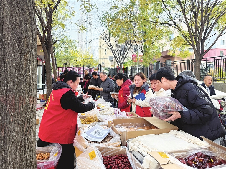 “暖冬惠民”集市推出多种“惠民特价”蔬菜、水果及副食品,价格均低于市场零售价。在惠民摊位前,居民们挎着小篮儿、拉着小车儿,有序地挑选着心仪的物品;身穿红马甲的社区志愿者穿梭在人群中,有的帮年迈的老人提着重物,有的耐心维持着秩序,一声声“阿姨您慢点”“大爷这边结账”,为热闹的集市增添了浓浓的温情。在“1元爱心馒头”售卖区,一袋袋白白胖胖的馒头递到老人们手中,老人们脸上洋溢着满意的笑容。市集的喧闹声、老人们的谈笑声、志愿者们的问候声交织在一起,汇成了一首冬日里动听的社区交响曲。