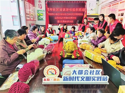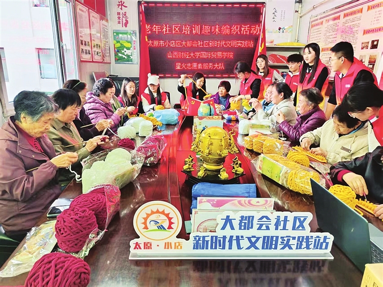 11月11日,国际大都会社区与山西财经大学国际贸易学院青年志愿者协会共同开展公益活动,通过围巾编织教学、传统技艺交流等,为老年人送上冬日温暖与关怀。 周利芳 摄