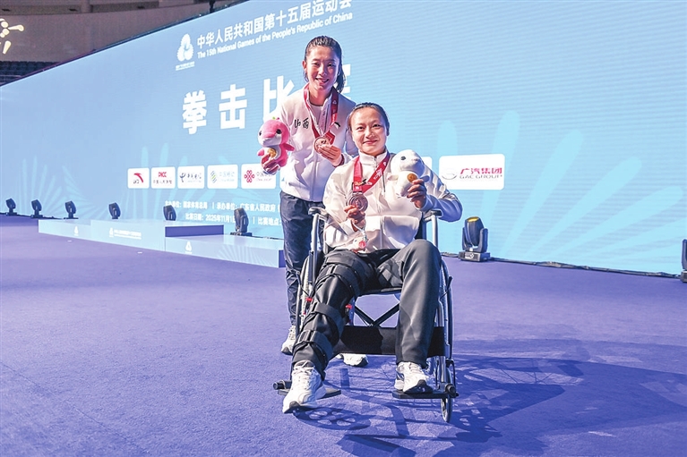11月12日,第十五届全国运动会拳击女子66公斤级比赛战罢,北京体育大学队选手禹立赛夺冠,山西选手赵春媛斩获女子66公斤级铜牌。