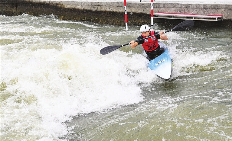 11月12日,第十五届全国运动会皮划艇激流回旋男子单人皮划艇项目开赛,山西队选手张河杰经过两轮预赛成功晋级半决赛。据了解,这是我省该项目选手首次闯入全运会半决赛。图为张河杰在比赛中。牛利敏 摄