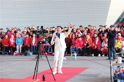11月13日,我市滨河体育中心广场歌声嘹亮、气氛热烈,太原激情广场滨河合唱团与青年男高音歌唱家魏广德百姓演唱会精彩上演。今年以来,魏广德在全国多座城市义务完成80余场公园演唱会,其露天演出形式通过网络直播吸引了10余万线上观众观看。 赵世凯 摄
