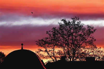 这是11月12日日出时分在德国柏林拍摄的朝霞。 新华社 发
