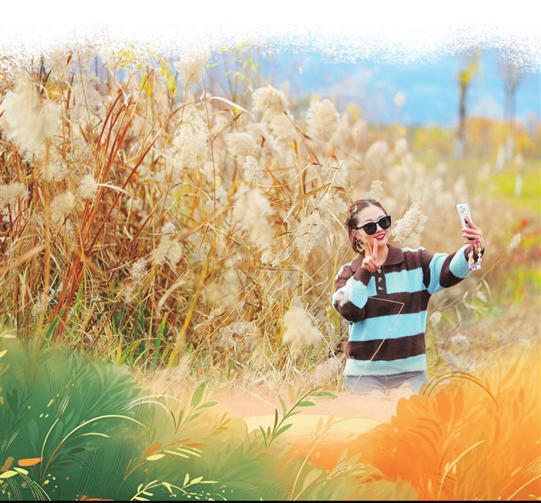 11月16日,汾河景区四期段内的芦苇一片金黄,美不胜收,吸引了大量市民和游客前往打卡拍照。