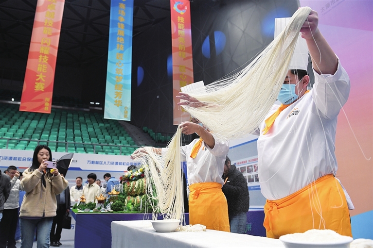 11月15日,第三届太原市职业技能大赛在滨河体育中心开幕。16支代表队、898名选手同台角逐28个竞赛项目。图为大赛的技能展示交流环节。 邓寅明 摄