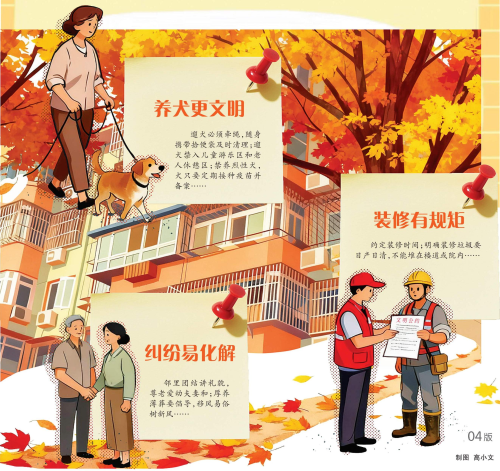 网格员让住户看了社区制定的《文明装修公约》,里面提到:早上8时前、晚上8时后,以及午休时段禁止施工,而且装修前要向社区报备。住户解释,刚搬来并不知晓,承诺马上改正。一场装修噪音的小风波很快平息。网格员平时调解最多的是装修扰民纠纷,为此今年8月份社区制定了《文明装修公约》,并告知了居民们。除了约定装修时间,还明确了装修垃圾要日产日清,不能堆在楼道或院内。