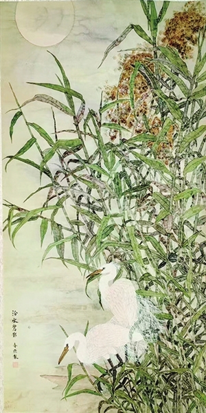 汾水鹭影(国画) 张春燕 作