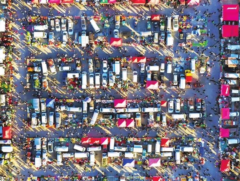 11月19日,位于山西体育场的早市,各类蔬菜水果供应充足,市民往来穿梭,烟火气十足。