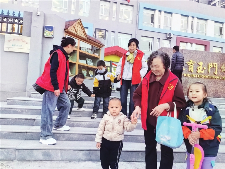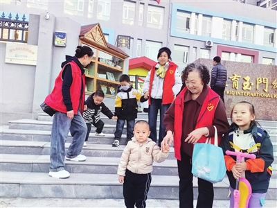 “幼儿园放学早,年轻人这时候下不了班,身边没老人帮忙,接娃确实是个问题。”张春兰说:“社区这项服务挺有意义,我也乐意给大伙帮忙。”她负责的3个孩子住在同一栋楼,年龄在4岁到6岁之间,都在小区附近上幼儿园。