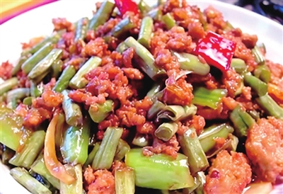 1.猪肉末150克,泡豇豆适量切1厘米大小的丁。