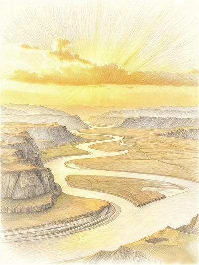 黄河奔腾万里,上下游的声音各具特色。倘用人生来比喻,上游源头段,大河初生成,所发是孩童般的声音,纯净透明,清澈响亮;中游晋陕峡谷段,黄土高原众多支流汇入,携来大量泥沙,河水变黄,声势变大,加之被束缚在七百公里长的峡谷之内,奔腾冲撞,声音也粗犷沉重了许多,犹如壮年大汉仰天长啸,壮怀激烈;及至到下游,变为地上悬河,散漫在宽阔的大堤之间,水流平缓,波澜不惊,声音也平和安详,宛若老者在讲述一段遥远的故事。