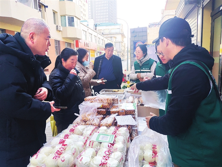 活动现场热闹非凡,社区工作人员提前布置,货架上整齐陈列着居民日常所需的各类食品:新鲜出炉的老面馒头、筋道十足的鲜面条、松软可口的面包、香酥入味的麻花等,品类丰富、物美价廉,全方位满足居民的生活需求。闻讯而来的居民们踊跃参与选购。大家有序挑选心仪商品,相互分享实惠好物,邻里间的欢声笑语充满整个活动现场。“不到四块钱就能买一袋鲜面条和6个老面大馒头,太划算了!”李阿姨手里提着刚选购的商品,脸上满是笑容。