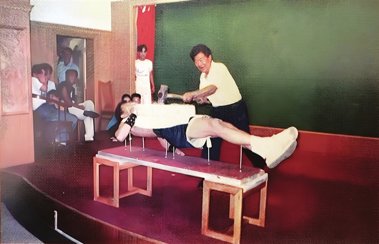上世纪80年代,电视台常有胸口碎大石、掌劈砖瓦、枪刺喉头等硬气功表演,部队训练也不乏类似科目。浑元一气功,表现形式与此相类,器械抽打、拍打、击打,力度和程度更让人瞠目结舌。