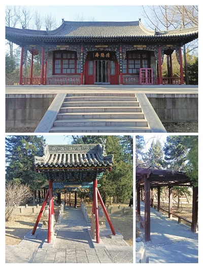 在田别墅的主要建筑没有建在晋祠公园中轴线上,而是分立于中轴线两侧。主要有北侧的伏龙园和南侧的德隐斋。这里是民国时期晋绥军将领周玳的私人花园。最初,周玳以100块大洋一亩的高价买下晋祠的20亩水田,开始营建别墅,后来,周围的地几乎全部被周玳买下,别墅用地达200亩之多。今唐园用地也曾是在田别墅的范围。德隐斋建于1929年,是在田别墅最早的建筑。由于建筑在南侧,所以又称“南大厅”。