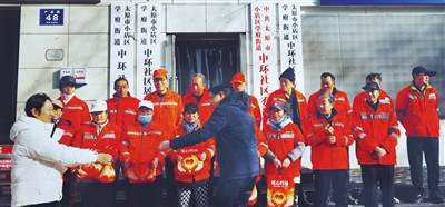 活动现场,山西晋兴资本信用发展服务有限公司的党员志愿者将20份“温暖三件套”,逐一分发到环卫工人手中。“这手套摸着就厚实,戴上干活肯定不冻手了!”58岁的环卫工人王师傅捏了捏新手套,脸上露出笑容。多年从事环卫工作的李女士接过保暖耳罩,当即戴在头上:“这下骑电动车上下班,耳朵再也不怕吹风了,社区和企业真是把我们的冷暖放在心上。”