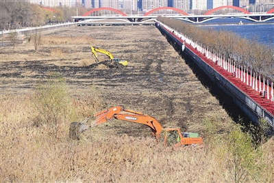 12月2日,汾河景区工作人员正在清理杂草,消除火灾隐患。邓寅明 摄