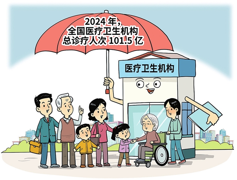 国家卫生健康委日前发布的《2024年我国卫生健康事业发展统计公报》显示,2024年,全国医疗卫生机构总诊疗人次101.5亿,比上年增加6.0亿人次,居民人均预期寿命达到79.0岁,孕产妇死亡率下降至14.3/10万,婴儿死亡率下降至4.0‰。 新华社 发