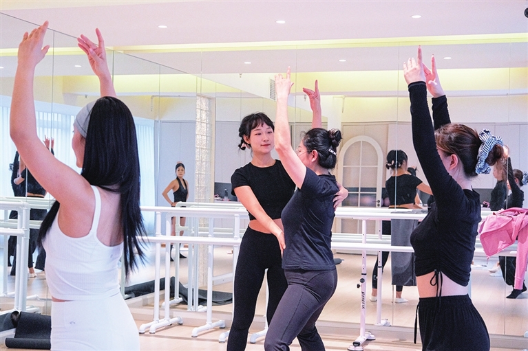 寒冬来临,许多市民选择瑜伽锻炼身体。图为12月6日,小店区一瑜伽馆内,学员正在老师的指导下进行锻炼。 王韵菲 摄