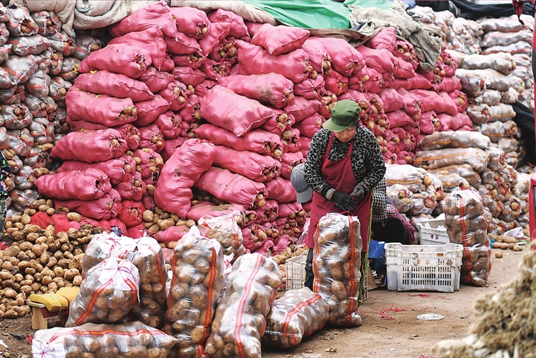 12月10日,河西农副产品市场内一派繁忙。为应对降雪天气,我市各农贸市场提前组织商户加大备货量,保障商品供应充足。 邓寅明 摄