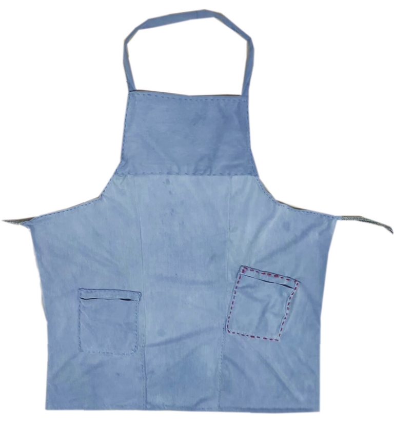 说干就干。我先剪下裤腿,拆开后得到两大片布,特意保留了原有的锁边。取其中一片半做围裙的下半部分主体,剩下的半片横过来,刚好能做围裙的上半截。接着要在上半截左右两侧各剪一个弧度,留作伸胳膊的地方。为了不出错,我把现用的围裙铺在上面“照猫画虎”。缝合时,我用的是小针脚,关键部位缝了倒钩针,就是为了结实;打结时也多打几下,防止脱线。缝直线简单,有弧度的地方格外用心,生怕缝得皱皱巴巴。四片布缝合好后,围裙的主体就成型了。