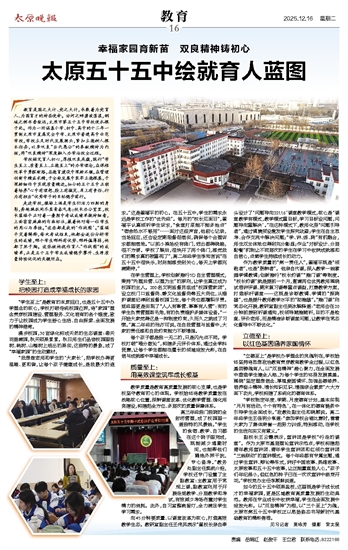 如今的五十五中硕果盈枝,这里既是学子成长成才的幸福家园,更是区域教育高质量发展的生动典范。教师在专业成长中收获幸福,学生在全面发展中绽放光彩。以“双良精神”为根,以“三个至上”为魂,太原市第五十五中学校正以昂扬姿态书写新时代基础教育的精彩答卷。