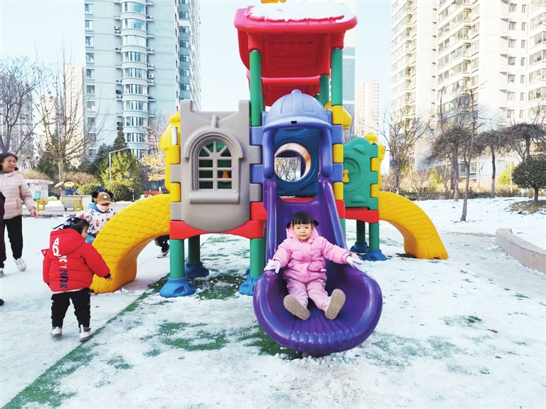 社区请来居民代表、物业负责人协商,很快敲定方案,将小区中心广场的一块闲置区域改造成游乐角,由物业承担采购与安装费用。施工过程中,社区工作人员全程跟进监督,物业则精准测量场地尺寸,严选安全环保的滑梯设备,并在周边铺设了防滑塑胶地面,加装了供家长休息的长椅。