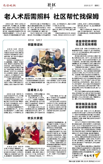 老人术后需照料 社区帮忙找保姆