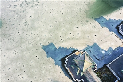 12月18日清晨,朵朵冰花“盛开”在双塔公园湖面上,构成一幅神奇的大自然画作。 牛利敏 摄