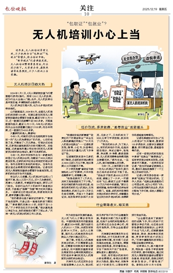 纪学君认为,感兴趣的学员,特别是一些急于学技能转行的学员,要仔细甄别,通过民用无人驾驶航空器综合管理平台查询、核验资质,选择正规机构参加培训,不要轻信广告。