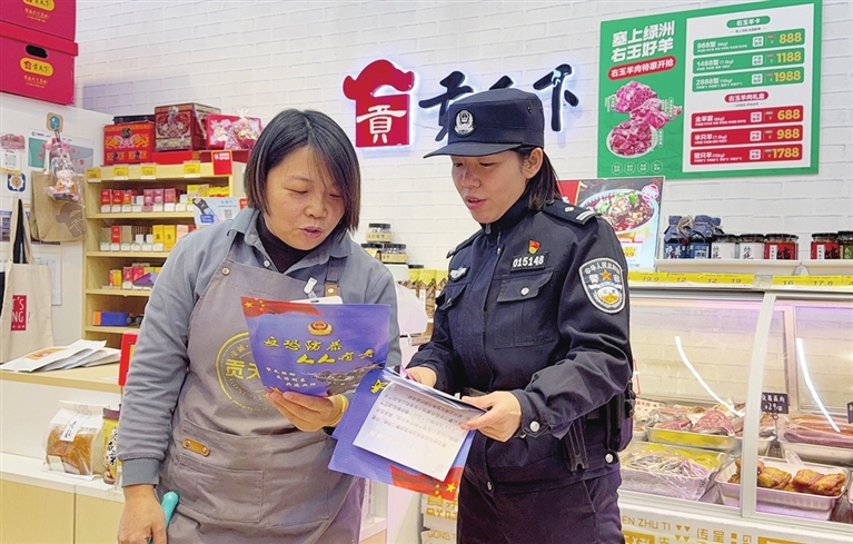 迎泽派出所民警向辖区群众普及应急处突知识,发放《公民防范恐怖袭击手册》,号召大家积极与危害国家安全的行为作斗争,自觉抵制恐怖主义,维护国家安全。 辛欣 摄