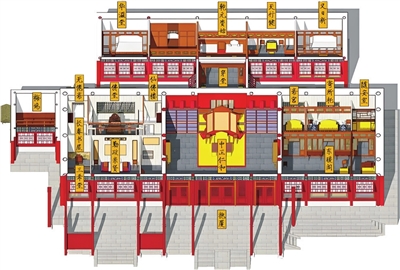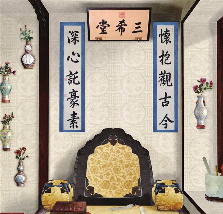 此次养心殿室内原状陈列的布展遵循历史原貌,正殿宝座上方悬挂雍正御笔“中正仁和”匾,西暖阁“勤政亲贤”匾额下的楹联恢复如初,三希堂内则按记载还原了乾隆时期的陈列场景。同时,数字展示也即将上线,观众可通过互动设备“亲历”乾隆元旦“明窗开笔”的仪式,在虚拟场景中感受御笔写下“天下太平”的瞬间。
