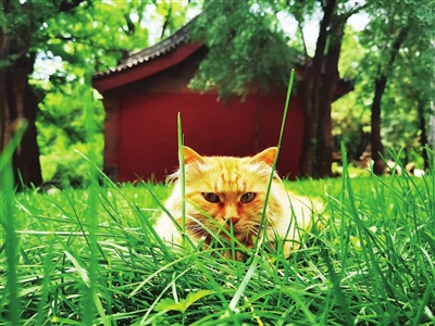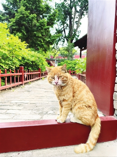“很多游客会因为看猫多次来晋祠。”导游小王说,“有些老游客甚至能叫出常驻猫的名字。有位北京的老人,每年都要来看‘殿前橘’——就是总待在奉圣寺大雄宝殿前的那只橘猫,已经连续七年来看了。”