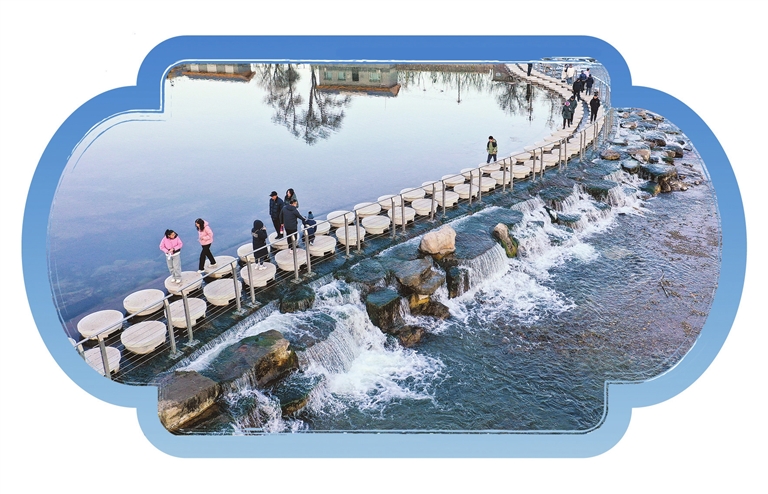 12月28日,汾河太原段上游,老龙头景区冬日景色宛如画卷,游客徜徉其间。牛利敏 摄