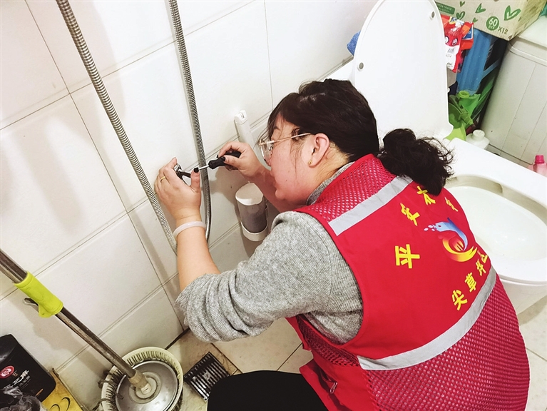像这样的事,多得数不清。谁家淋浴头堵了,她带上白醋,泡一泡、刷一刷,一分钱不花就给弄通了;谁家门把手松了,孩子拉着玩有危险,她过去垫个垫片、紧紧螺丝,立马就牢固了。修完了,住户想倒杯水、留吃饭,她总是笑着摆摆手,收拾好工具箱,又赶去下一家。
