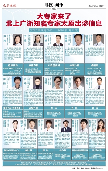 出诊时间:府城院区12月30日、1月6日下午 汾东院区12月31日、1月7日上午